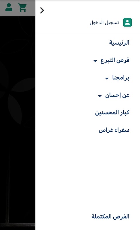 Ehsan application, a platform for charitable work. The application provides an easy and reliable experience for benefactors by offering many opportunities to donate in various fields of charity inside and outside the Kingdom for the most deserving groups, which contributes to maximizing the wage and achieving the values of community solidarity.