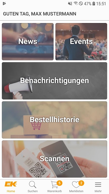 قلب برنامه EK، جستجوی هوشمندانه تمام متن است. با پیشنهادات جستجو در زمان واقعی، گزینه انتخاب گروهی و گزینه های فیلتر، برای شریک تجاری به عنوان یک ابزار خرید تلفن همراه در دسترس است. علاوه بر اطلاعات دقیق مقاله با تصاویر 360 درجه و ویژگی های محصول، شرکای تجاری نیز دسترسی به تخفیف فعلی و سفارشات قرار داده شده است. علاوه بر این، برنامه EK ارائه می دهد حداکثر شفافیت قیمت. فروشنده همیشه بهترین قیمت شخصی خود را می بیند، از جمله تخفیف ها و شرایط ویژه، و همچنین EIA یا قیمت فروش محاسبه شده به صورت جداگانه.