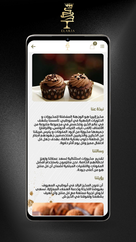 Elariaae پخته شده از جمله کیک، کیک، دونات و ترافل را ارائه می دهد.