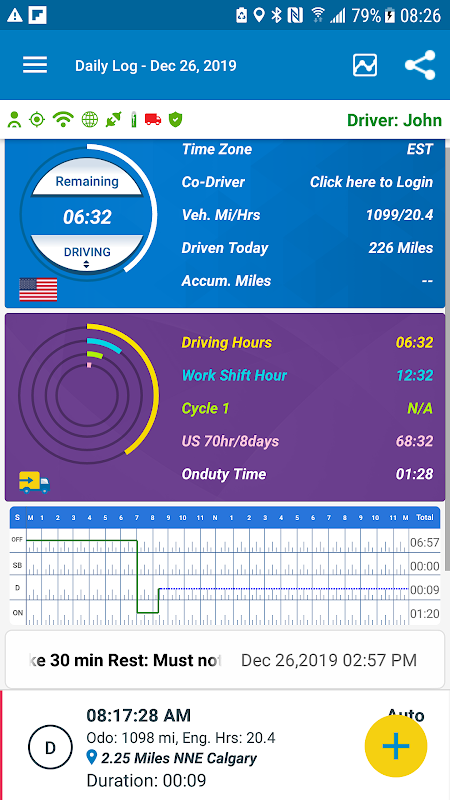 ساعتهای نقض سرویس و هشدارها طبق قانون انتخابی HOS ایالات متحده یا کانادا محاسبه میشود. PAYD ELD شما را از نگرانی دور نگه می دارد و شما و شرکتتان را از جریمه ها و امتیازات CSA نجات می دهد.