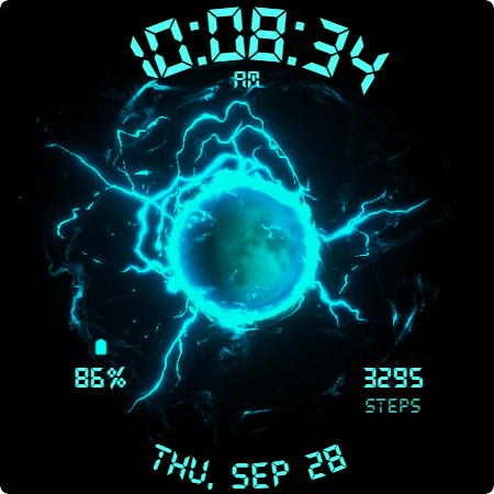 یک صفحه ساعت چشم نواز با انیمیشن برقی برای Wear OS.