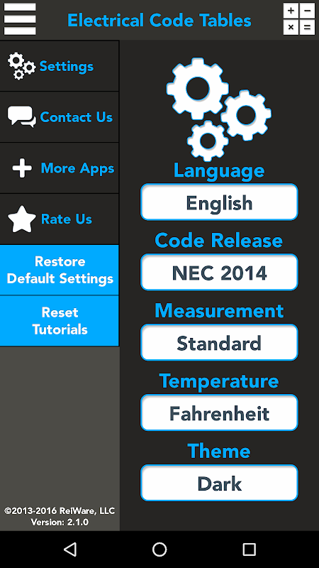 Electrical Code Tables is an all in one application for NEC code tables. Tables include: Motor FLA, NEMA Enclosures, Conductor Ampacity, Conductor Area, Conduit Area, Minimum Cover, and much more! Great for a quick check in the field or for use in the office. Simple to use and simple to understand, just code tables!