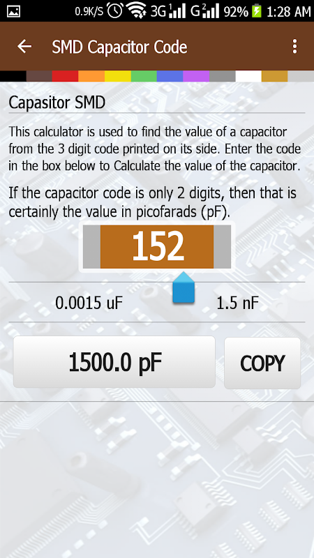 الکترونیک ماشین حساب ساده ترین است برنامه برای محاسبه الکترونیک قطعات رنگ / کد
