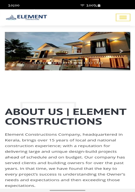شرکت Element Constructions ، که مقر آن در کرالا است ، بیش از 15 سال تجربه ساخت و ساز محلی و ملی را به همراه دارد. با اعتبار برای ارائه پروژه های بزرگ و بی نظیر طراحی قبل از برنامه و بودجه. شرکت ما طی سالهای گذشته در خدمت مشتریان و صاحبان ساختمان بوده است. در آن زمان ، ما دریافتیم که کلید موفقیت هر پروژه درک نیازها و انتظارات مالک و سپس فراتر از آن انتظارات است.