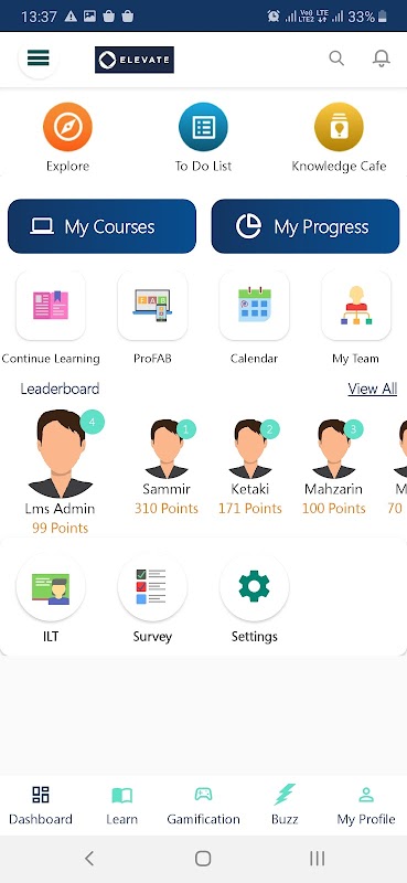 Elevate @ Khaitan & Co شامل ناوبری کاربر پسند و تم های قابل تنظیم است که به شما امکان می دهد تجربه یادگیری را واقعاً متعلق به خودتان کنید. تجربه یادگیری دیجیتالی اپلیکیشن Elevate @ Khaitan & Co با ایجاد سرگرمی یادگیری، از طریق مسیرهای یادگیری شخصیسازی شده و بازیسازی شده برای دانشآموزان، فراتر از سیستم مدیریت یادگیری متوسط است. فراگیران می توانند دوره های بسته بندی شده را به عنوان ماموریت های کوچک، ماموریت ها و ماموریت های رئیسی تکمیل کنند که امتیاز، نشان ها، عضویت در باشگاه های انحصاری را بر اساس سطوح و رتبه هایشان در تابلوی امتیازات به دست آورند.