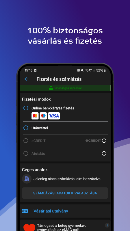 علاوه بر حساب eMAG.hu است همیشه در دست، بنابراین شما می توانید، فاکتورها، سفارشات محصولات مورد علاقه خود را مشاهده و دریافت اطلاعات در مورد حمل و نقل و یا صورتحساب.