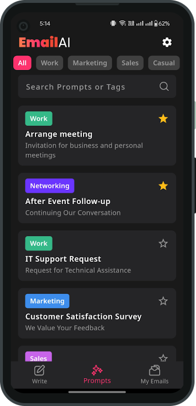 با EmailAI Assistant & Writer می توانید بدون زحمت ایمیل های خود را بنویسید، پاسخ دهید و مدیریت کنید. برنامه ما به شما کمک می کند تا ایمیل های حرفه ای و مختصر را در چند ثانیه با استفاده از فناوری پیشرفته هوش مصنوعی ایجاد کنید. این برنامه همه چیز مورد نیاز شما را دارد، از ایمیل های با ساختار مناسب گرفته تا پاسخ های سریع و مدیریت جامع صندوق ورودی.