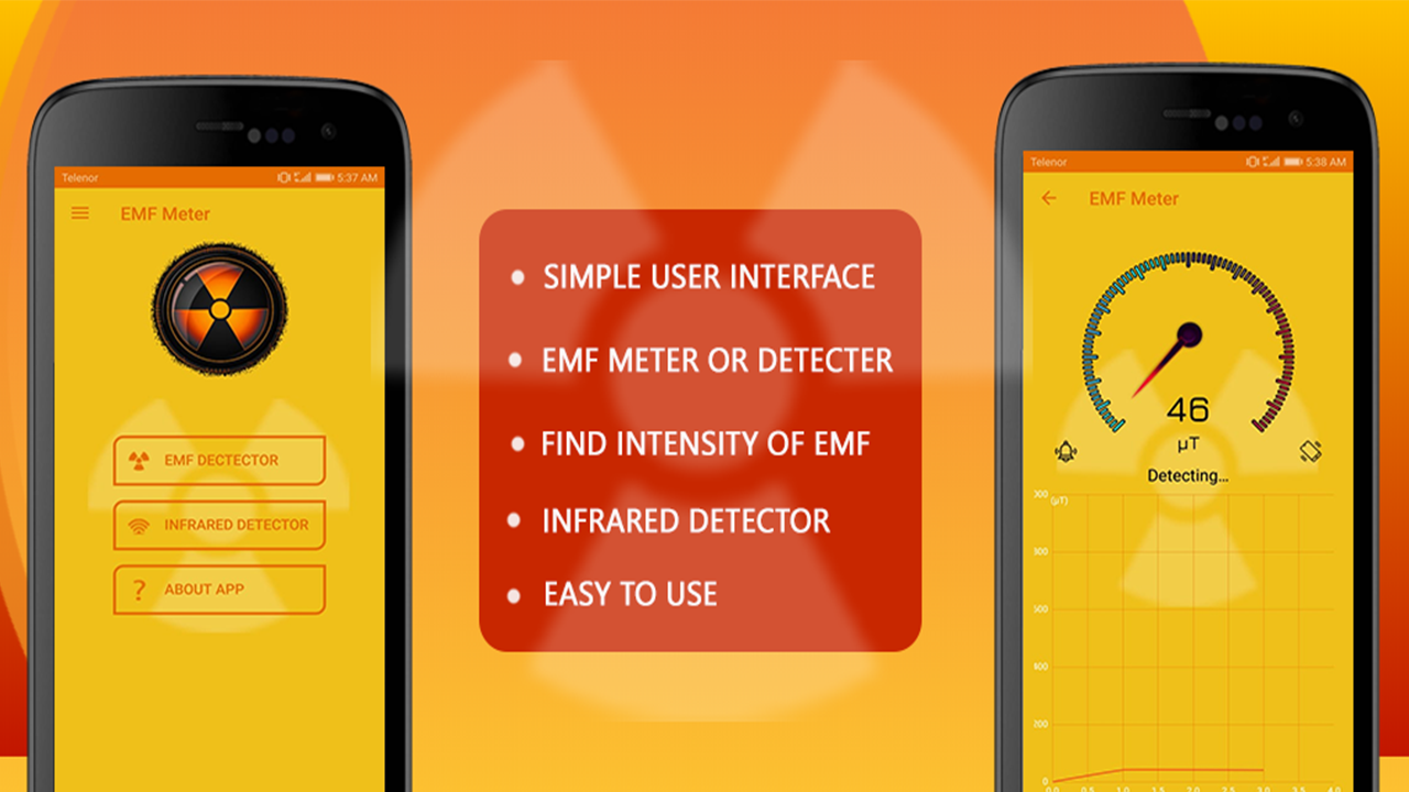 اکنون این برنامه نهایی آشکارساز EMF بسیار مفید است. دستگاه اندازهگیری EMF همچنین به دلیل حسگر میدان مغناطیسی که به عنوان تشخیص دوربین جاسوسی و یاب دوربین مخفی استفاده میشود، به عنوان فلزیاب نیز کار میکند و مانند پدیدهها برای تشخیص هرگونه فعالیت ماوراءالطبیعه در اطراف شما عمل میکند.