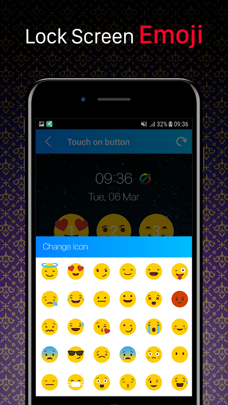 Change your default lock screen with emoji lock screen and increase your privacy security with smiley.