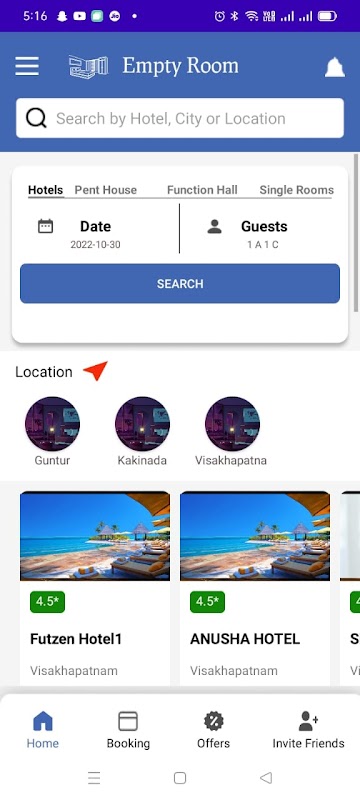 Empty Room is a Hotel or Pent Houses or Function House or Single Room Booking