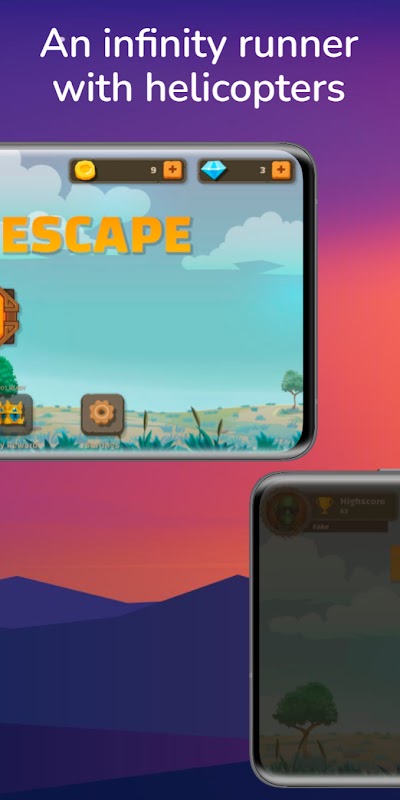 Endless Escape یک دونده بی نهایت است، شما یک هلیکوپتر را کنترل می کنید و سعی می کنید تا آنجا که ممکن است بروید. مرور نقشه ها در سحر، روز، غروب و شب. 🚁🚁🚁