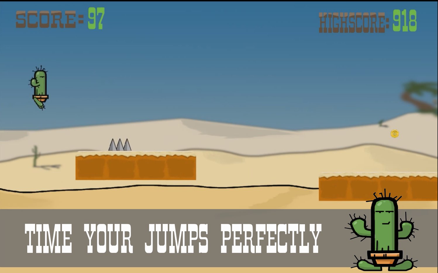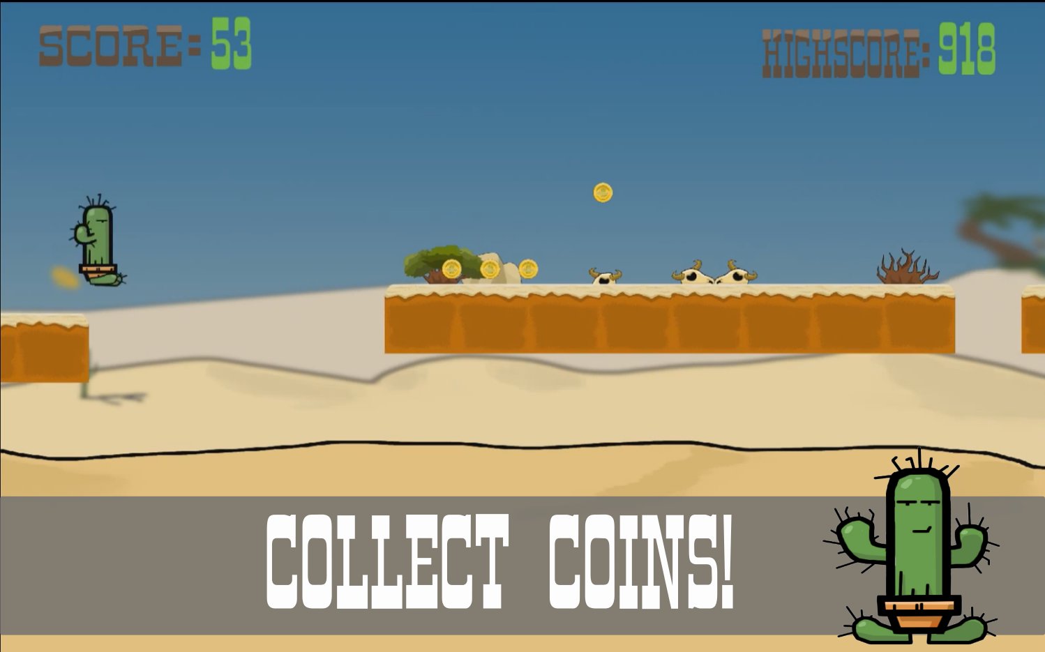 Calvin the Cactus has been shrouded within the scorching heat for far too long. With dreams of a better life he searches for an oasis to call his own. To reach his goal he will face many dangers. Will you bring Calvin to salvation or will he perish under the relentless sun?