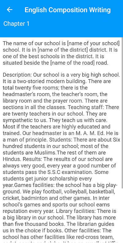 این برنامه برای دانش آموزان 1 تا 10 است. این به همه دانش آموزان کمک می کند تا مقاله نویسی خود را در واژگان انگلیسی و انگلیسی بهبود بخشند. انگلیسی نوشتاری راهی است که در آن زبان انگلیسی از طریق یک سیستم معمولی از علائم گرافیکی منتقل می شود. با انگلیسی گفتاری مقایسه کنید. اولین اشکال انگلیسی نوشتاری در اصل ترجمه آثار لاتین به انگلیسی در قرن نهم بود.