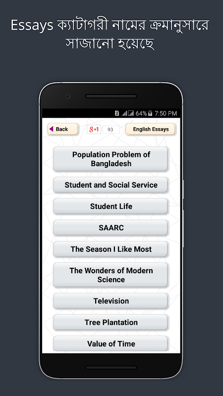 اطلاعات English Essays ~ ইংরেজী রচনা APK