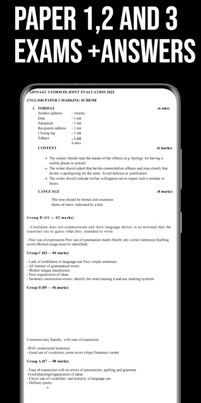 English form 3 exams with detailed marking schemes