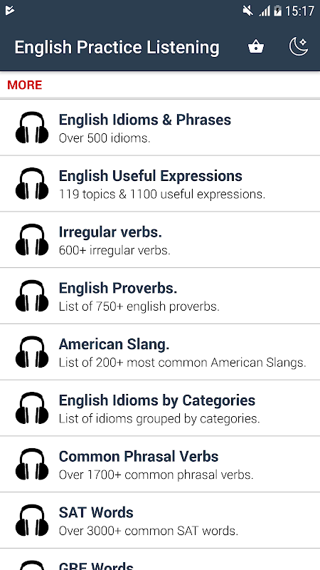 Listening Practice انگلیسی یک برنامه رایگان برای یادگیری زبان انگلیسی است. تمرین شنیداری انگلیسی شامل درس هایی است که به تلفظ انگلیسی و زبان روزمره توجه خاصی می کند.