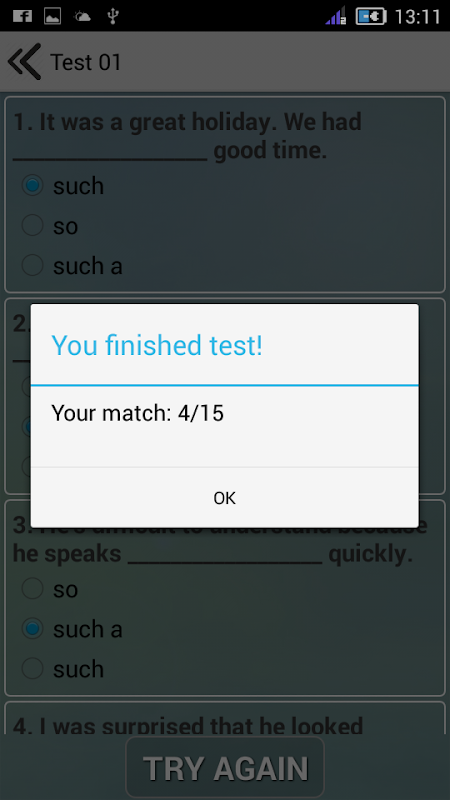 "ویژگی تست" کمک شما را به بررسی دانش زبان انگلیسی بر این اساس از طریق آزمونها که تشریفات همان امتحانات رسمی با آزمون.