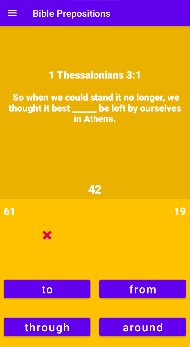 برنامه آموزش حروف اضافه انگلیسی با استفاده از متن کتاب مقدس NIV برای مسابقه.