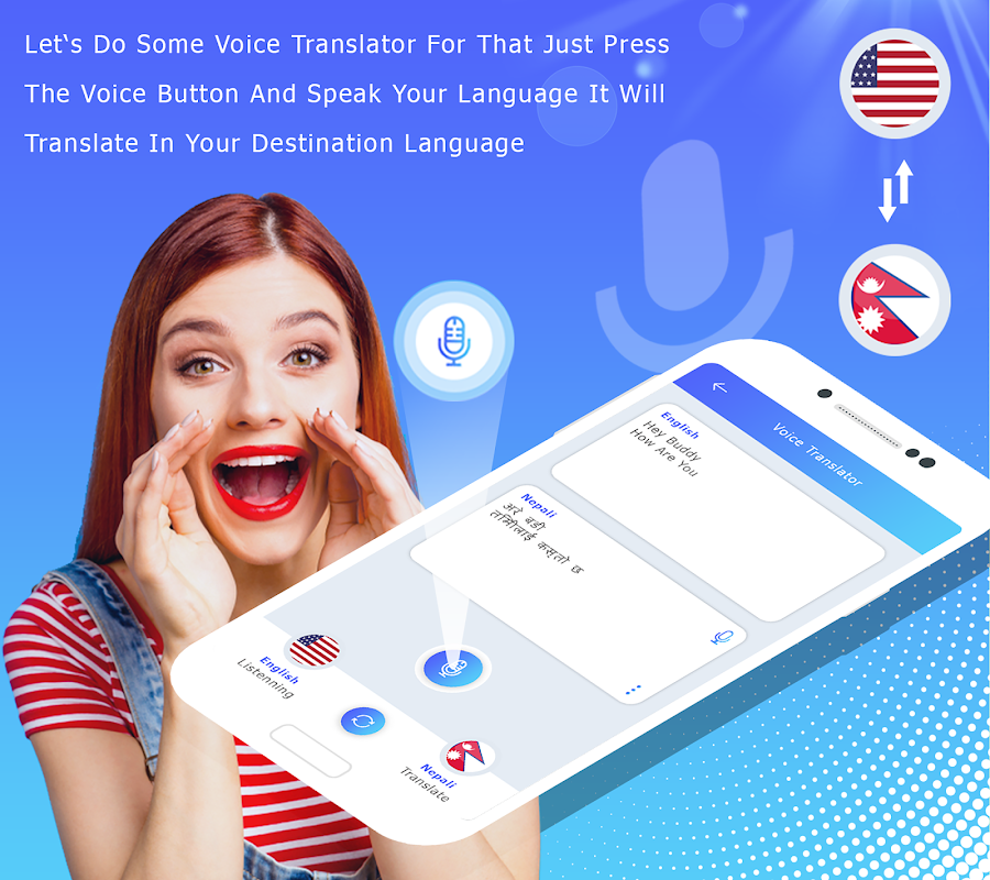 این مترجم می تواند به سرعت از نپالی به انگلیسی و انگلیسی به نپالی کلمات و همچنین جملات کامل را ترجمه کند. ترجمه فوری و اعتبار کامل کلمات. این برنامه برای افرادی که یک زبان خارجی را مطالعه می کنند (مسافران، دانش آموزان و همه کسانی که سطح زبان خود را بالا می برند) بسیار مفید خواهد بود.