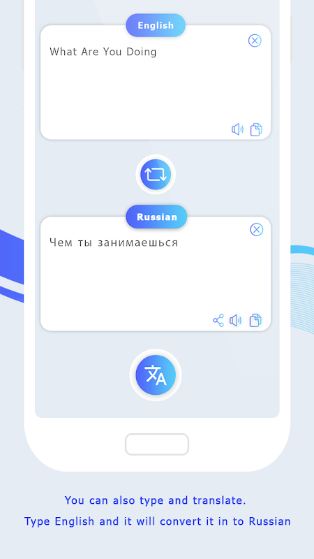 با عملکرد ترجمه پایدار و حرفه ای زبان و طراحی اپلیکیشن با کاربری آسان، می توانید بدون سر و صدا انگلیسی را به روسی ترجمه کنید. مترجم انگلیسی به روسی به شما کمک می کند صدا را به متن ترجمه کنید، می توانید صدا را ضبط کنید و زبان را ترجمه کنید.