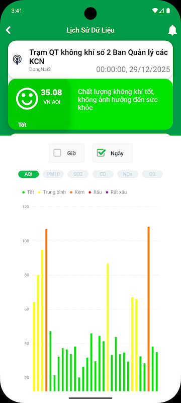 هشدار در مورد کیفیت محیط در یک زمان خاص