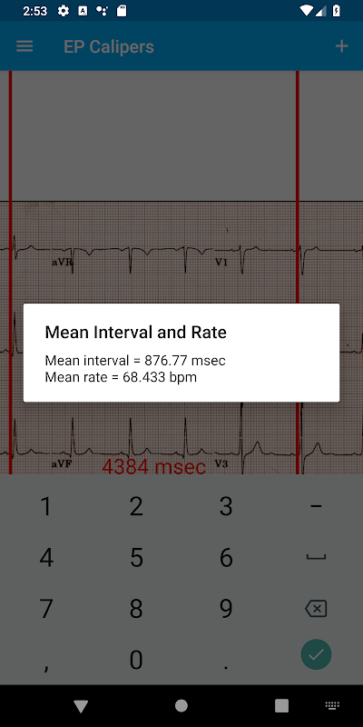 EP Calipers کالیپر های الکترونیکی را برای اندازه گیری فواصل در تصاویر الکتروکاردیوگرام (ECG) یا ضبط الکتروفیزیولوژیک فراهم می کند. در الکتروفیزیولوژی آزمایشگاه، کالیپر الکترونیکی به عنوان بخشی از سیستم ضبط گنجانده شده است. EP Calipers مشابه کالیپر های الکترونیکی برای استفاده در تلفن یا رایانه لوحی Android خود فراهم می کند. کالیپر های الکترونیکی EP Calipers دقیق تر، راحت تر استفاده می شوند و کمتر از کالیپر های مکانیکی خطرناک (بدون نقطه های تیز)! EP Calipers می تواند ECG ها را در فرمت های مختلف گرافیکی و فایل های PDF باز و تجزیه و تحلیل کند، از جمله ضبط های ECG تلفن همراه AliveCor ™. EP Calipers شامل زمان، دامنه، کالیپر زاویه و "Brugadometer" مفید برای ارزیابی ECG برای سندرم Brugada.