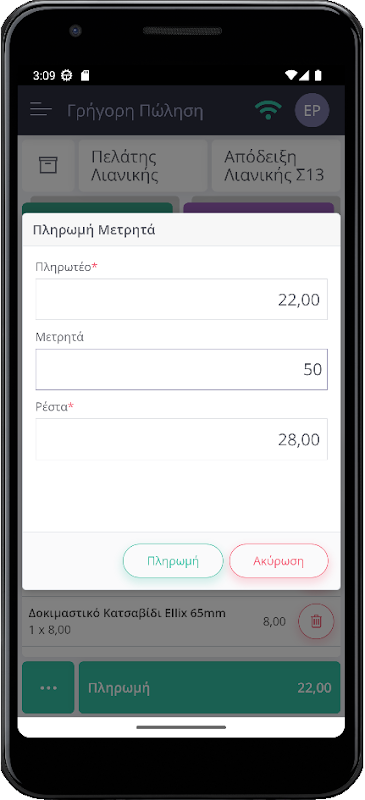 Epsilon Smart Tameiaki 24/7 یک صندوق پول دیجیتال مدرن در Cloud است که با خدمات ارائهدهنده صورتحساب الکترونیکی تایید شده مرتبط است. عملکرد آفلاین را فعال می کند و عملکرد بی وقفه کسب و کار را حتی در موارد قطع اتصال تضمین می کند. علاوه بر این، به محض بازیابی اتصال، تمام اسناد صادر شده در حالت آفلاین به طور خودکار در حساب کاربر آپلود می شوند.