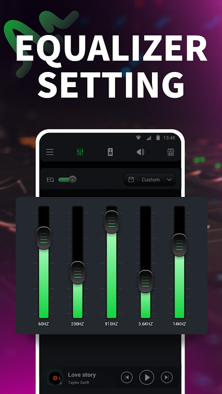 اکولایزر تقویت کننده ای است که کیفیت صدا را با تقویت باس، مجازی ساز و اکولایزر بهبود می بخشد تا صدای موسیقی را در دستگاه شما به حداکثر برسانید تا از موسیقی و صدای خود بهترین استفاده را ببرید.🎧🌈