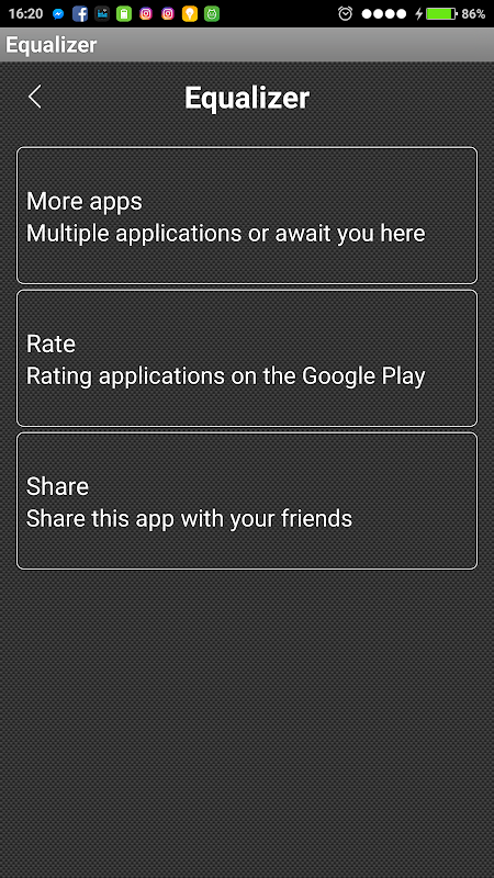 Music Equalizer will adjust the level of your sound effects, then you can make the best use of the Music Player. Equalizer Presets applied based music on Music Genre, or controller 10 band equalizer for creating your own custom set.