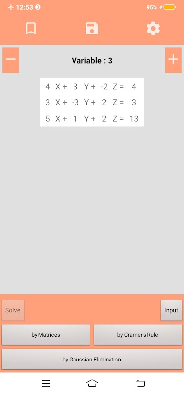 حلکننده معادله برنامهای برای حل معادلات با سه روش مختلف (حذف گاوسی، قانون کرامر و ماتریسها) است.
