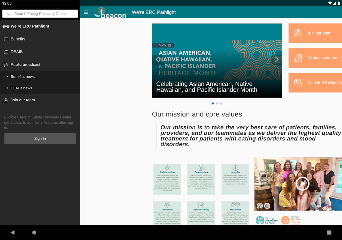Beacon یک برنامه ارتباطی برای Eating Recovery Center و Pathlight است.