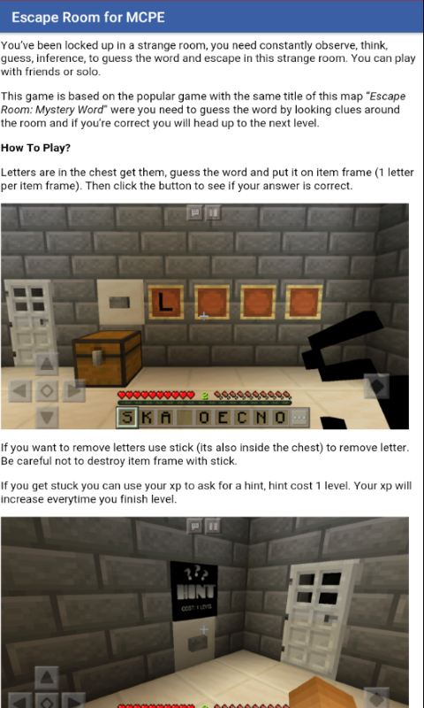 This is an unofficial app. Name, brand and assets are the property of the owner Mojang AB.This app just help you to get new experience in survival and exploration in the game.