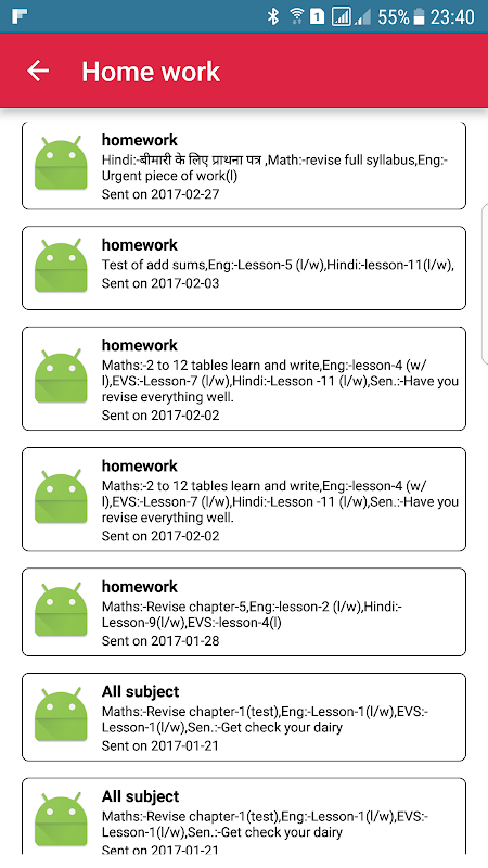 eSchool از منطقه، برنامه تلفن همراه در ارتباط با توسعه دهندگان منطقه فن آوری. (http://www.developerszone.in) نرم افزار آندروید برای مدارس راه اندازی شد. این برنامه برنامه بسیار مفید برای والدین، دانش آموزان، معلمان و مدیریت برای به دست آوردن و یا آپلود اطلاعات در مورد دانش آموز است. هنگامی که برنامه در تلفن همراه، دانش آموز، پدر و مادر، معلم و یا نصب مدیریت شروع به گرفتن و یا آپلود اطلاعات برای دانش آموز یا کارکنان حضور و غیاب، مشق شب، نتایج، بخشنامه ها، تقویم، حق هزینه، معاملات کتابخانه، سخنان روزانه، و غیره بهترین بخش از مدرسه است که، آن را آزاد مدارس از دروازه اس ام اس های تلفن همراه که بیشتر از زمان دریافت خفه و یا منع در موارد اضطراری.