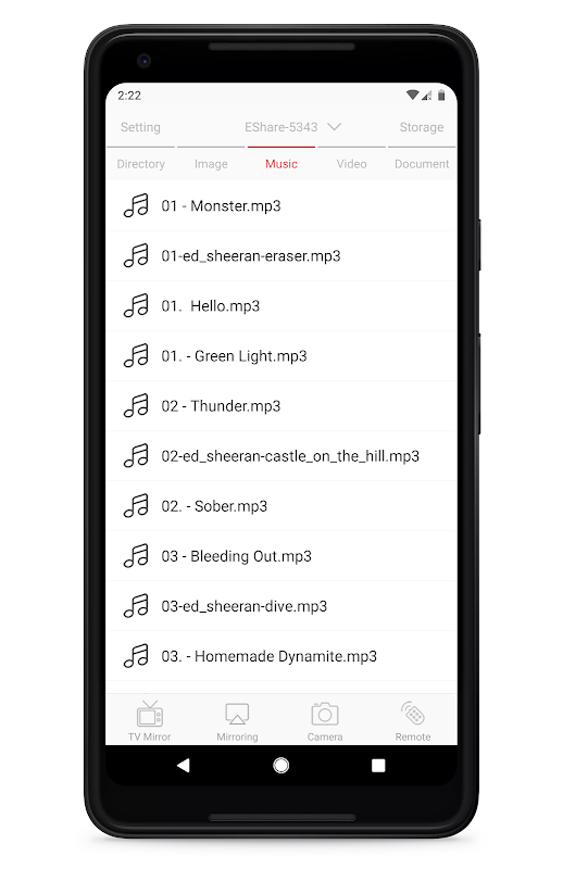 EShare همزمان با فعال کردن عملکرد "Mirroring"، محتوای نمایش داده شده در صفحه دستگاه شما را به طور موقت به دستگاه گیرنده ای که انتخاب می کنید جمع آوری و ارسال می کند. همراه با "کنترل معکوس دستگاه" (که از API سرویس دسترسی استفاده می کند)، می توانید دستگاه خود را در دستگاه دریافت کننده مشاهده و کنترل کنید.