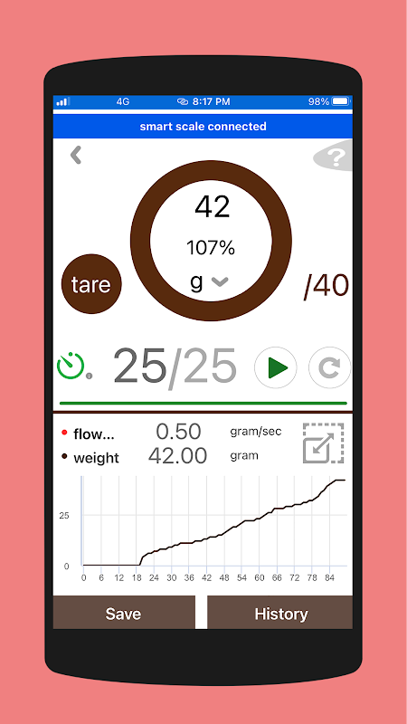 برای افرادی که به دنبال کنترل کامل فرآیند تولید اسپرسو هستند ، مقیاس قهوه بی سیم Smart Chef برای شما مناسب است. همراه با برنامه SmartCafe Espresso ، می توانید به راحتی میزان جریان و عملکرد اسپرسو را مشاهده کنید تا با دقت 0.1 گرم به تعادل بین طعم و قدرت برسید. همچنین کلیه داده های ثبت شده برای تجزیه و تحلیل بیشتر از طریق CSV قابل صادرات هستند.