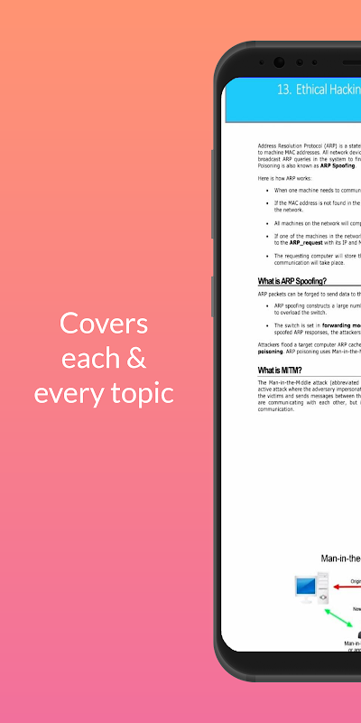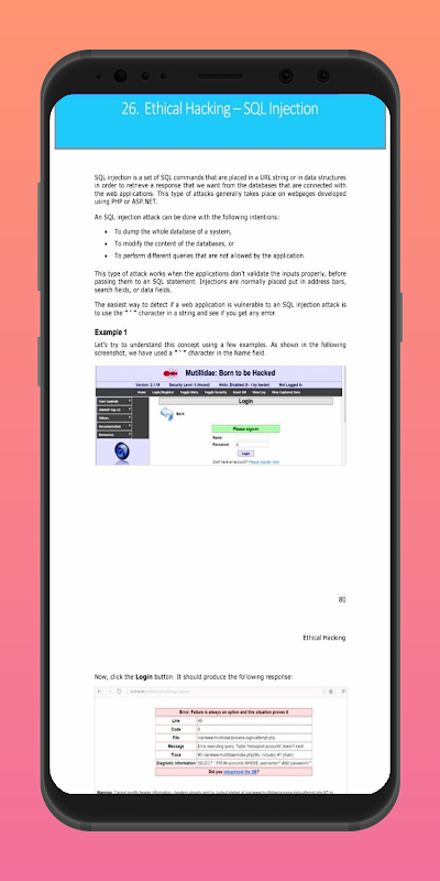 در این برنامه آموزش اخلاقی هک ، شما می توانید با اصول هک کردن شروع کنید تا بتوانید مهارت های خود را در مورد آن ایجاد کنید. شما می توانید مهارت های خود را در هک کردن از طریق Hacking Tutorials در این برنامه ایجاد کنید.