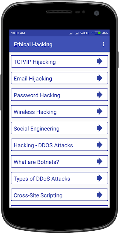 Ethical Hacking app collections of Categories are below and provide all this Topic
