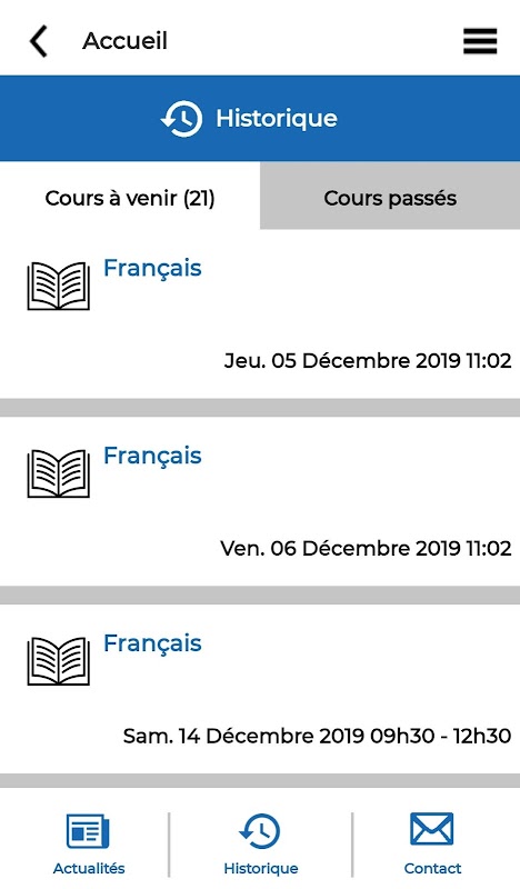 برنامه "مطالعه پلاس" به شما امکان مشاهده همه اطلاعات مفید (دوره ها ، فعالیت ها ، فیس بوک ، ...) را می دهد ، بلکه همچنین برای رزرو برنامه و دریافت آخرین اخبار آنها در قالب اعلانهای فشار استفاده می کند.