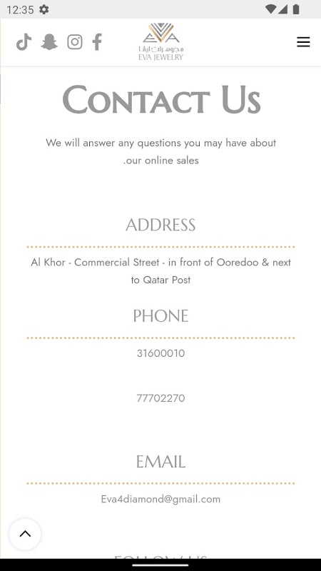 APKPure از تأیید امضای نرمافزار برای اطمینان از دانلودهای بدون ویروس APK EVA JEWELLERY استفاده میکند.