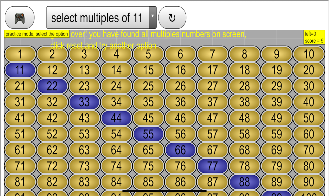 • finding the common multiples of two given 1-digit numbers.