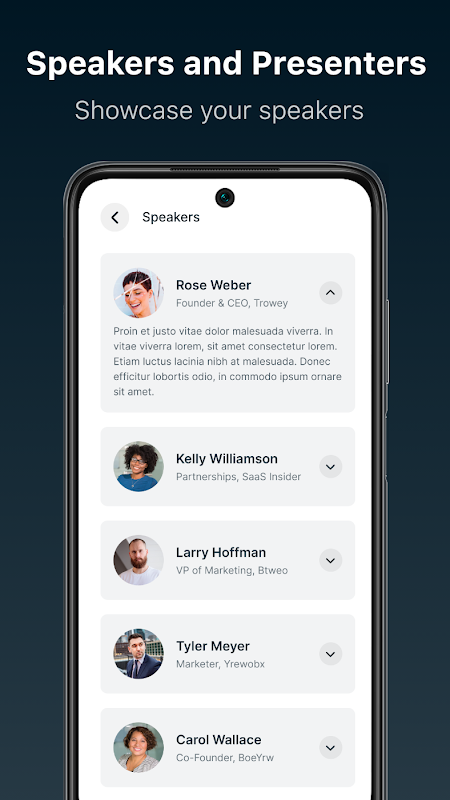 برنامه Attendee Event یک تجربه منحصر به فرد برای شرکت کنندگان فراهم می کند تا با یکدیگر در ارتباط بمانند و اعلان های فشاری را دریافت کنند و در عین حال با همه ذینفعان رویداد خود، قبل، حین و بعد از تجربه درگیر شوند. با این برنامه می توانید: