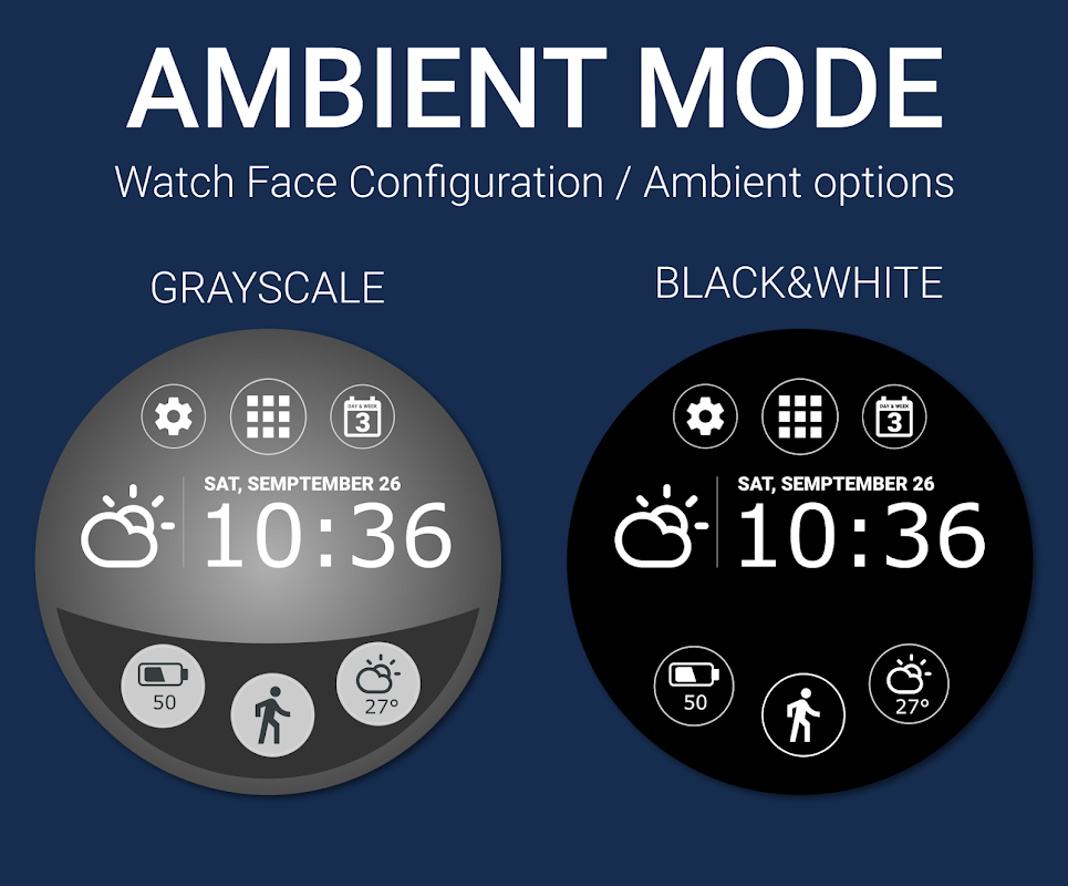 EveryDay Watch Face با ساعت های مربعی و گرد عالی کار می کند.