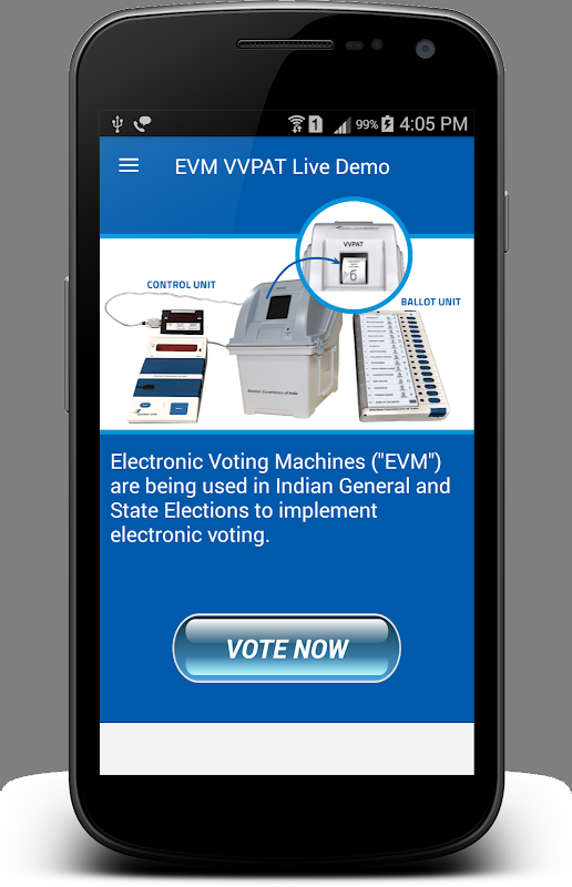 The App EVM VVPAT Live Demo is Simulator for current Election Process in India.