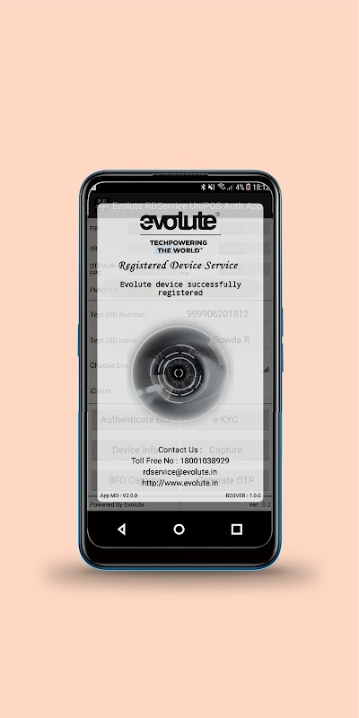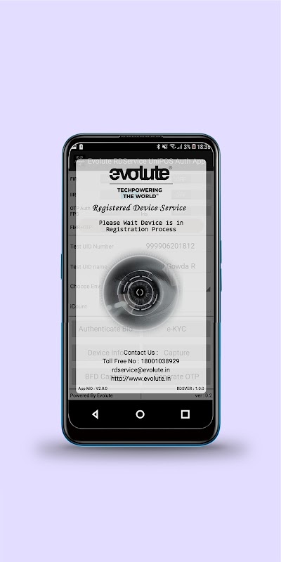 Evolute RD Service - Iris یک راه حل فوق العاده است که توسط Evolute Group ارائه شده است که ضبط و علائم بیومتریک را در بر می گیرد و بیومتریک را در داخل آن رمزگذاری می کند ، امنیت را تضمین می کند و از هر گونه نشت داده جلوگیری می کند! سرویس RD Evolute - Iris دارای سنسور تأیید شده IriShield -USB MK2120UL STQC است و بر روی ارتباط USB کار می کند. این سیستم عامل Android 7 و بالاتر را پشتیبانی می کند.