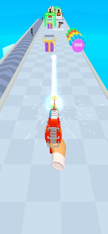 گیم پلی بازی ساده و در عین حال اعتیادآور است. همانطور که در مناظر پر جنب و جوش مسابقه می دهید، هدف شما تیراندازی و جمع آوری انواع اسلحه های آینده نگر است. هر تفنگی که جمع آوری می کنید تکامل می یابد و قدرتمندتر می شود و قدرت شلیک و قابلیت های شما را افزایش می دهد. اما سریع باشید - موانع پیش رو منتظر نخواهند بود تا نفس خود را بگیرید!