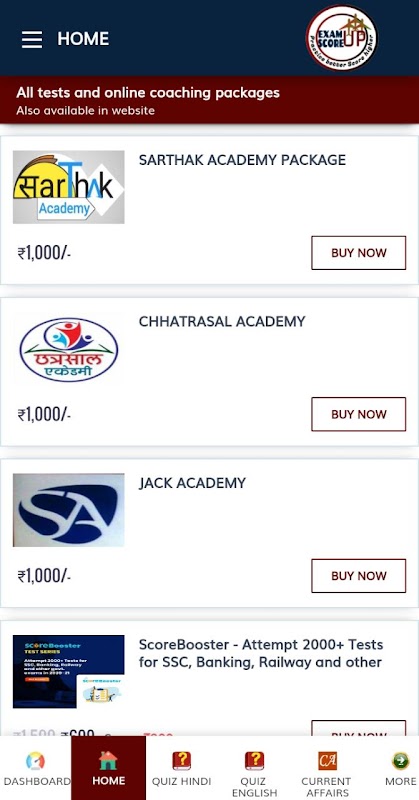 EXAM SCOREUP is excellent platform for the preparation of all competitive exams