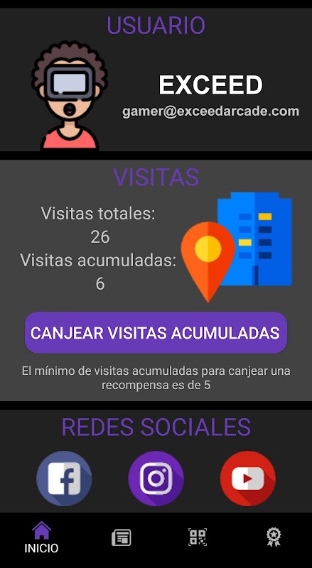 Con la aplicación EXCEED podrás sumar todas todas tus visitas a nuestras sucursales. Al acumular visitas recibe como recompensa tiempo gratis en Realidad Virtual. Recibe las ultimas noticias relacionadas con EXCEED y Realidad Virtual.