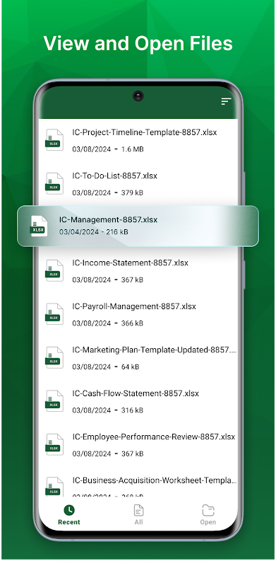 مدیریت آسان فایل: فایل های xls و xlsx خود را با ویژگی های مدیریت فایل قوی سازماندهی کنید. بدون دردسر اسناد خود را مرتب کنید، جستجو و پیمایش کنید.