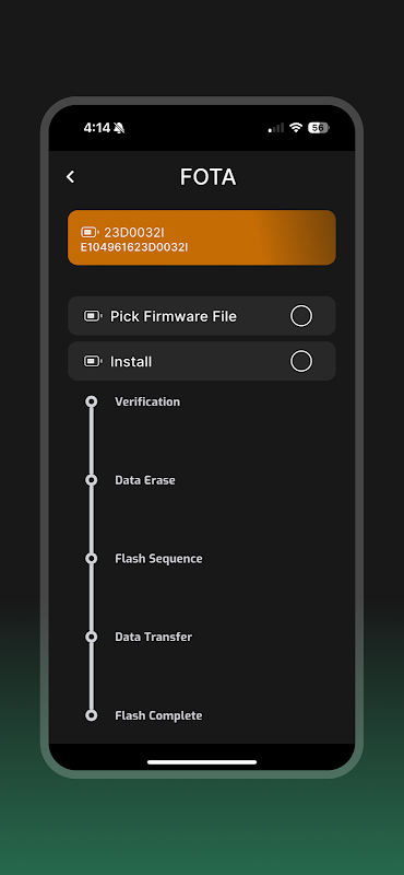 ExiBMS از طریق BLE برای نظارت و عیب یابی باتری در زمان واقعی متصل می شود.