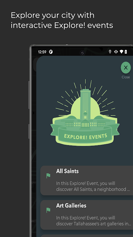 این برنامه فضایی را برای مردم محلی و بازدیدکنندگان Tallahassee ایجاد می کند تا جواهرات اطراف شهر را کشف کنند. با استفاده از جدیدترین ویژگی های نقشه برداری ما می توانید مکان ها ، رویدادهای مورد علاقه خود را کشف کرده و با تکمیل کاوش نشان کسب کنید! مناسبت ها.